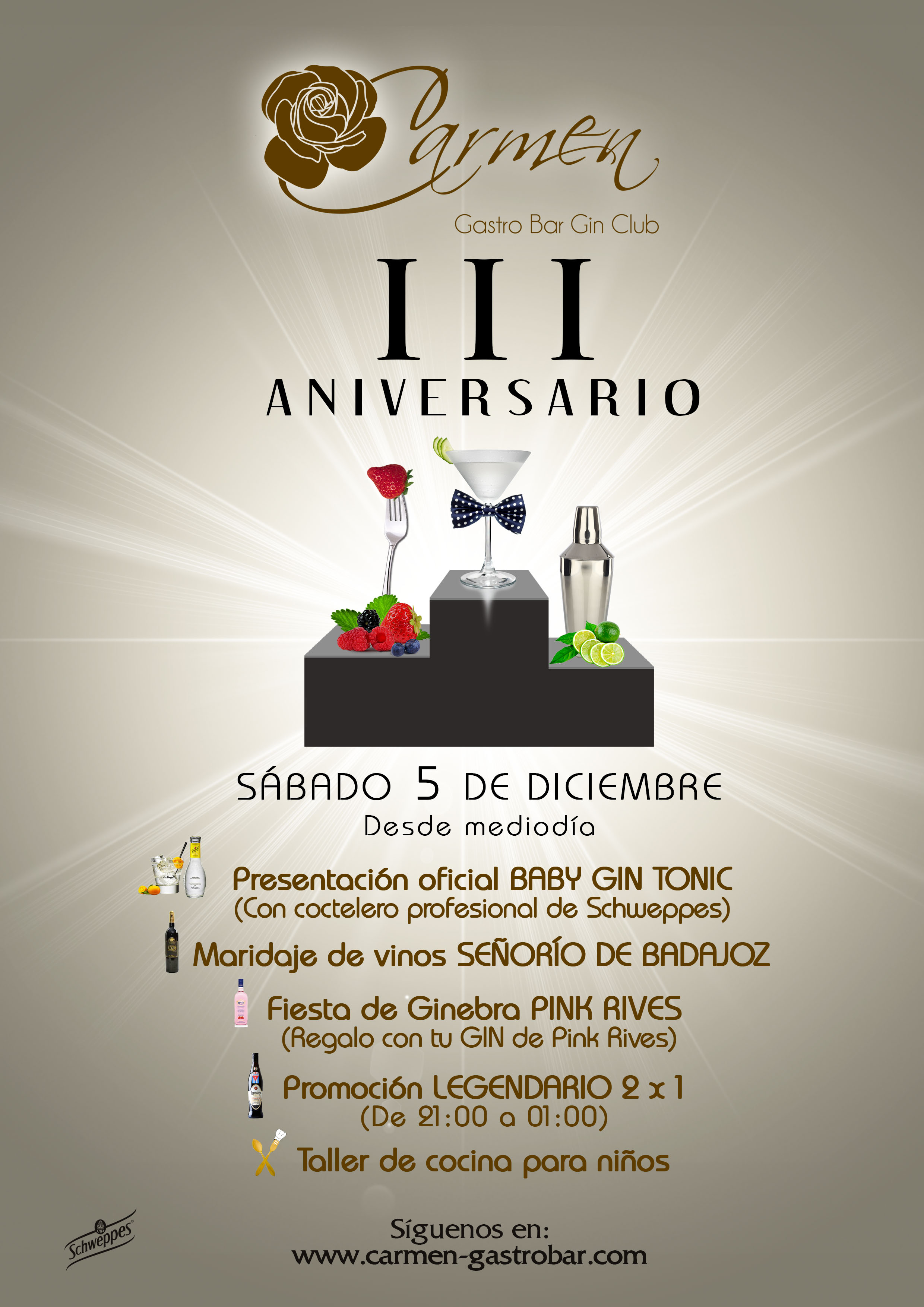 3er Aniversario Carmen: Sábado, 5 de Diciembre.