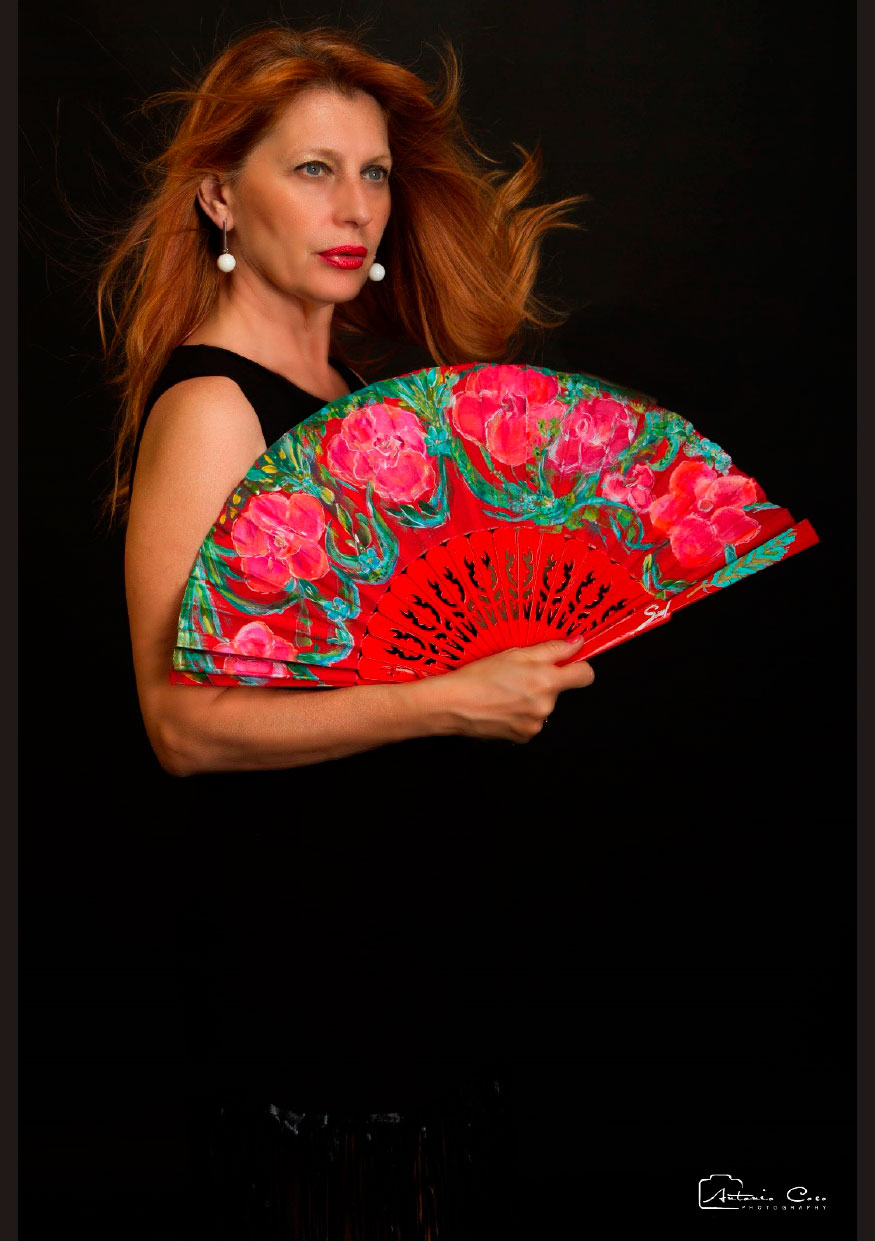 Polifacética y aventurera, vivió varios años en Ibiza, donde plasmó su creatividad en abanicos llenos de color y vitalidad, que rápidamente captaron la atención del público.